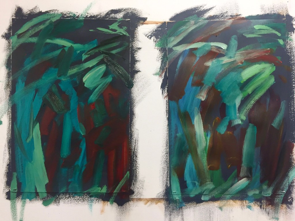 I did both of these paintings right after being outside sketching in the woods. So these paintings are memory paintings. I did the oil painting first, and with the acrylic painting I tried to keep the brushstrokes and colour palette similar to the oil painting, so it is easier to compare.