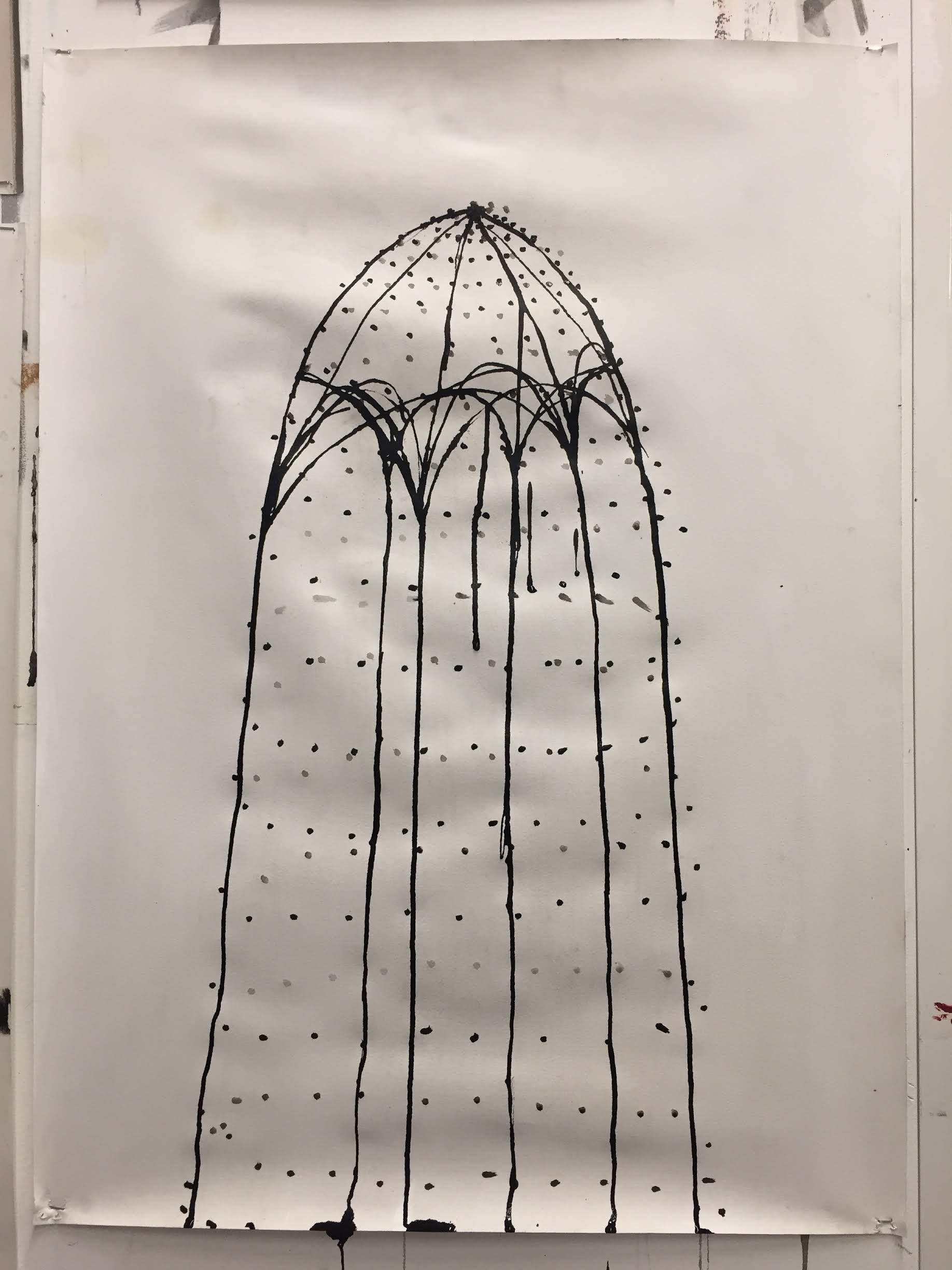 With these ink shapes I am mimicking the shapes I see inside cathedrals. Like someone said when looking at the ink drawings: