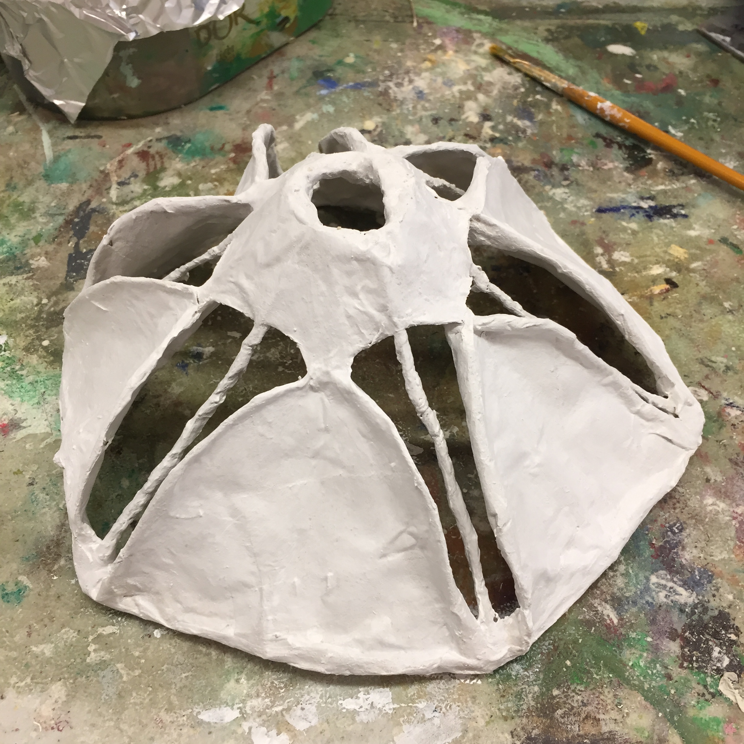Using a very accurate design with shading to demonstrate depth, and knowing how I wanted the finished product to be, was a much clearer way of working than I have worked in the past, for example with the clay sculpture where I did very rough sketches and then finished the sculpture off as I went. Having a detailed plan meant I didn’t waste time, and I added the full wire armature before I started adding paper mache.