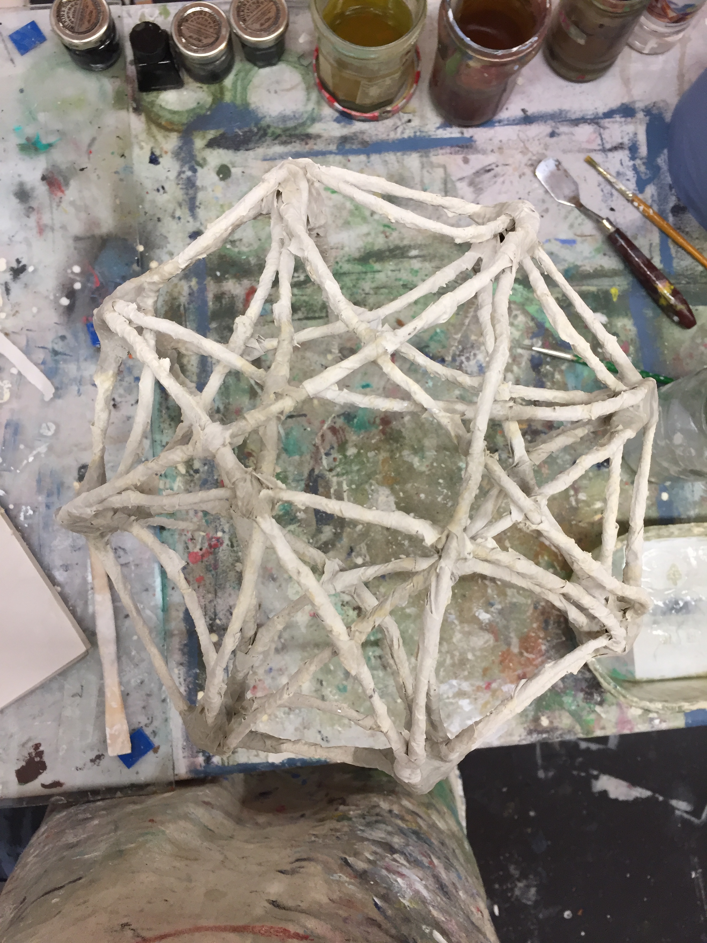 Painting the paper mache white removed so much of the surface texture and shadows of the piece. It makes the lines look a lot smoother and refined.