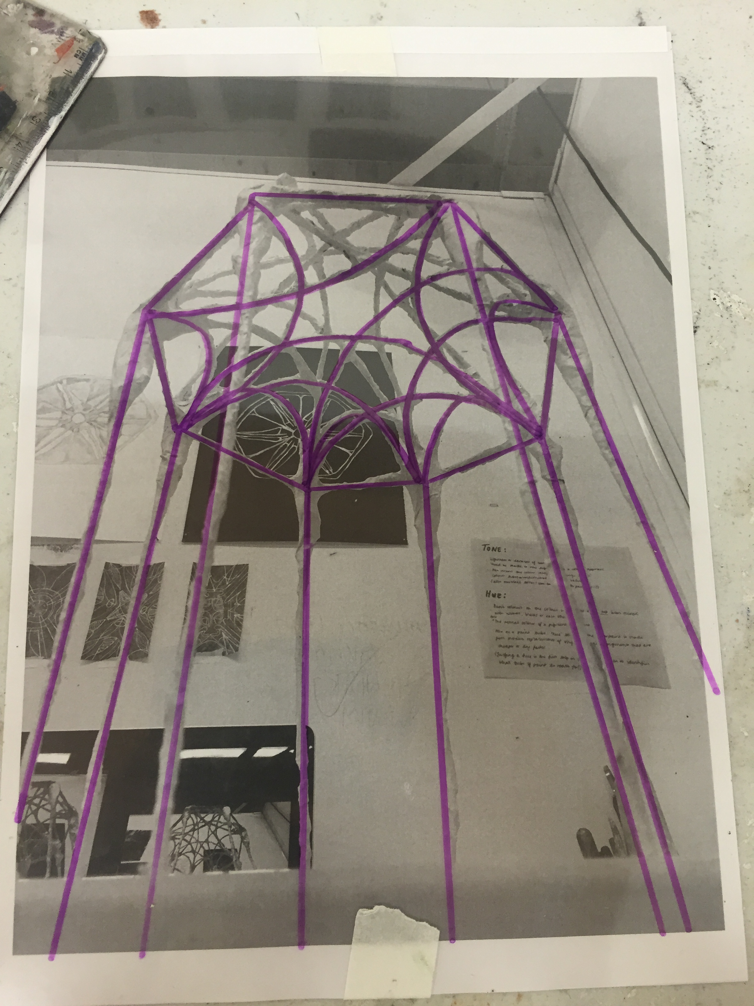 Three stage of translating the sculpture onto the projector. I was about to begin drawing the sculpture free hand on the acetate but then I realised why am I not just printing the image and tracing it?