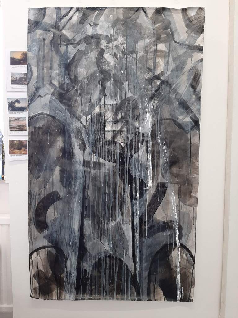 I have never compared one of my ink paintings with one of my oil paintings before, because I have not had an oil painting strong enough or large enough to do so in the past. I didn’t expect to be doing this but since their both on my wall it seems natural!