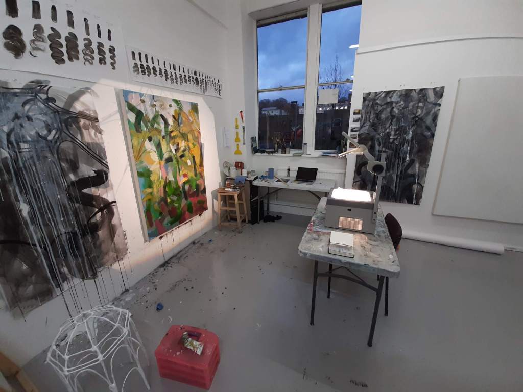 It’s really exciting to see the finished painting next to the ink painting I started with and the sculpture! This process is very meditative, what I mean by that is the process of ink drawings, a sculpture and the painting process is a meditative process which enables me to think conceptually and take things forward. Doing as a method of thinking, that’s what I feel like I’m doing.
