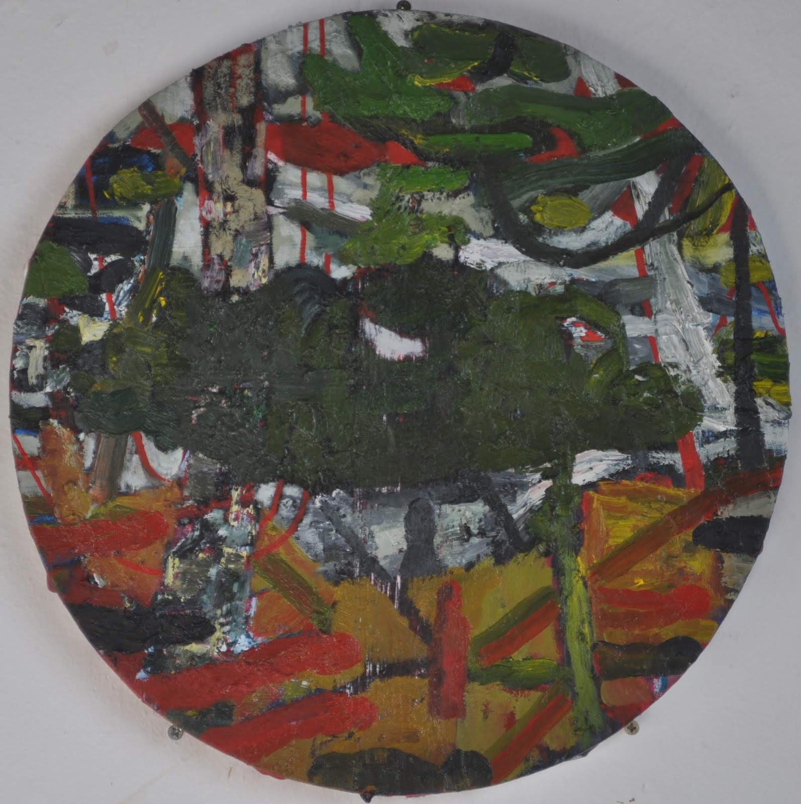 “At the house I grew up in,” Joe Packer says, “You could walk straight out of the back door into a wood… Childhood memories involve being in the enclosed, interior/exterior space of a wood. The filtering of light through trees and foliage.” He says his paintings are not of those places, but he thinks of them collectively as “some sort of landscape and somehow connected to places familiar to me where I grew up.”