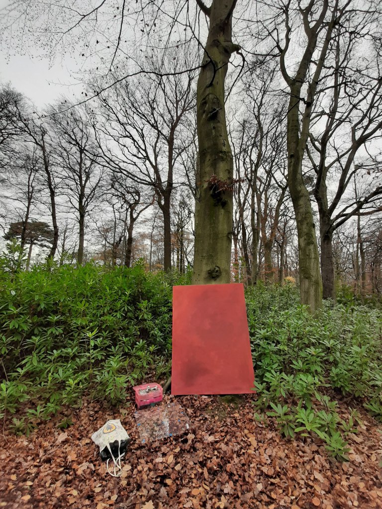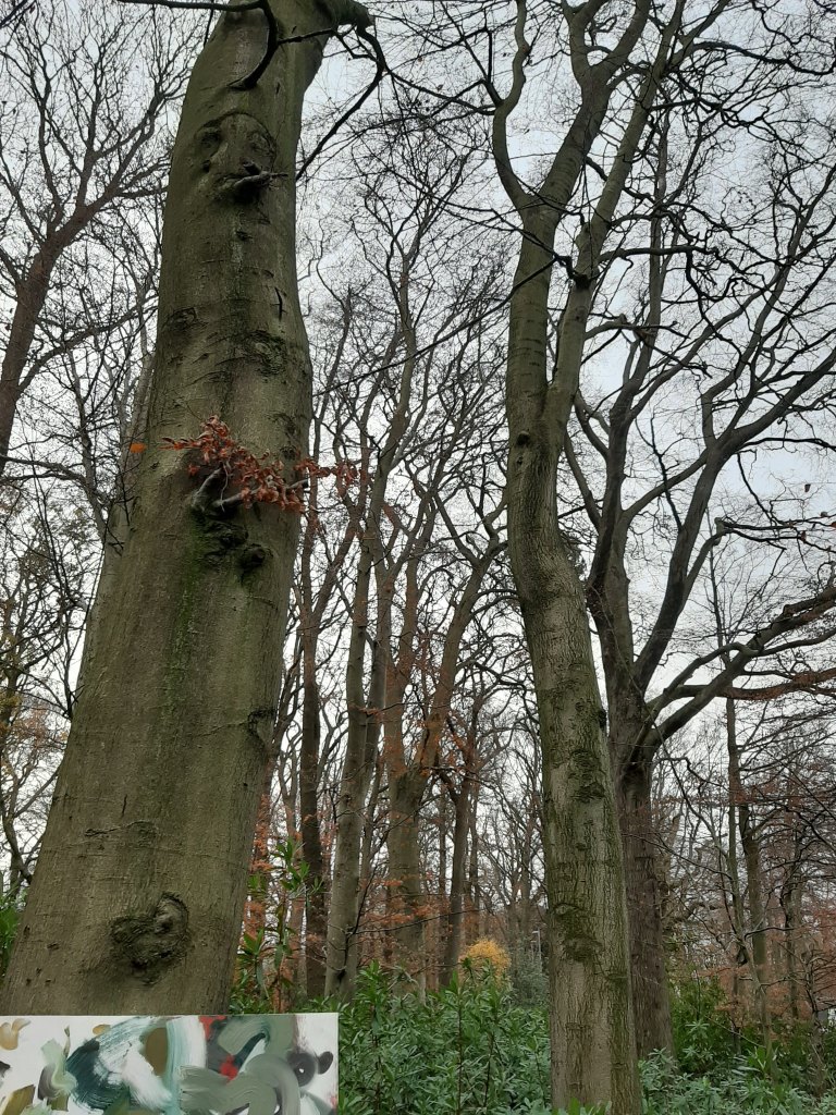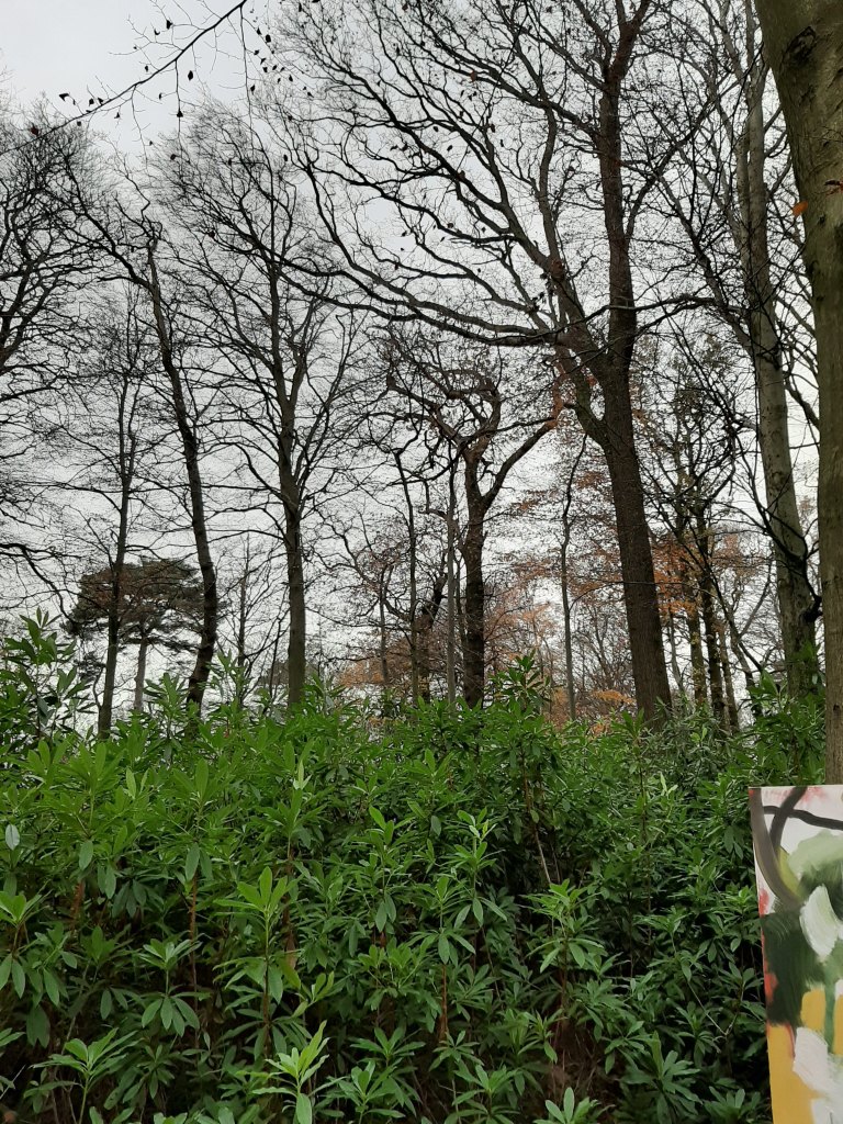 – I spend as much time mixing paint as I do applying it to the canvas. This is because the colours were very dull and bleak the day I was painting, it was grey dull and the trees had shed nearly all their leaves, so there wasn’t much variation in colour in the landscape! When I have painted the landscape previously, I have applied a lot more colour, because the woods felt alive and because I could see a lot of colour. But here, I was careful when mixing colours to stay true to the dull and subtle colours I could see, and I felt the same, the landscape felt silent and grey and blustery. So I was careful when mixing colours, and made sure to take my time.
