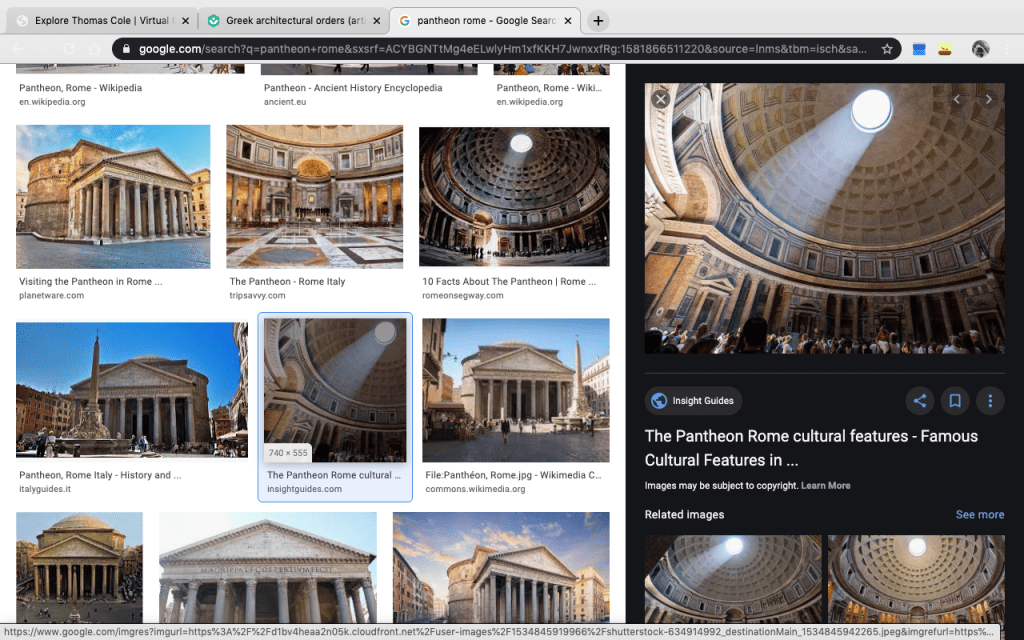I was doing some dissertation work and I stumbled across these amazing images of the building Panini painted. I’d not thought to look at the real building because I assumed it wouldn’t be as grand and amazing in photographs, but it is! This stream of light coming down is exactly the type of thing I want to paint with glazing. The light defines the empty space, giving it dimension. And it represents the whole in the building that lets the outside in.