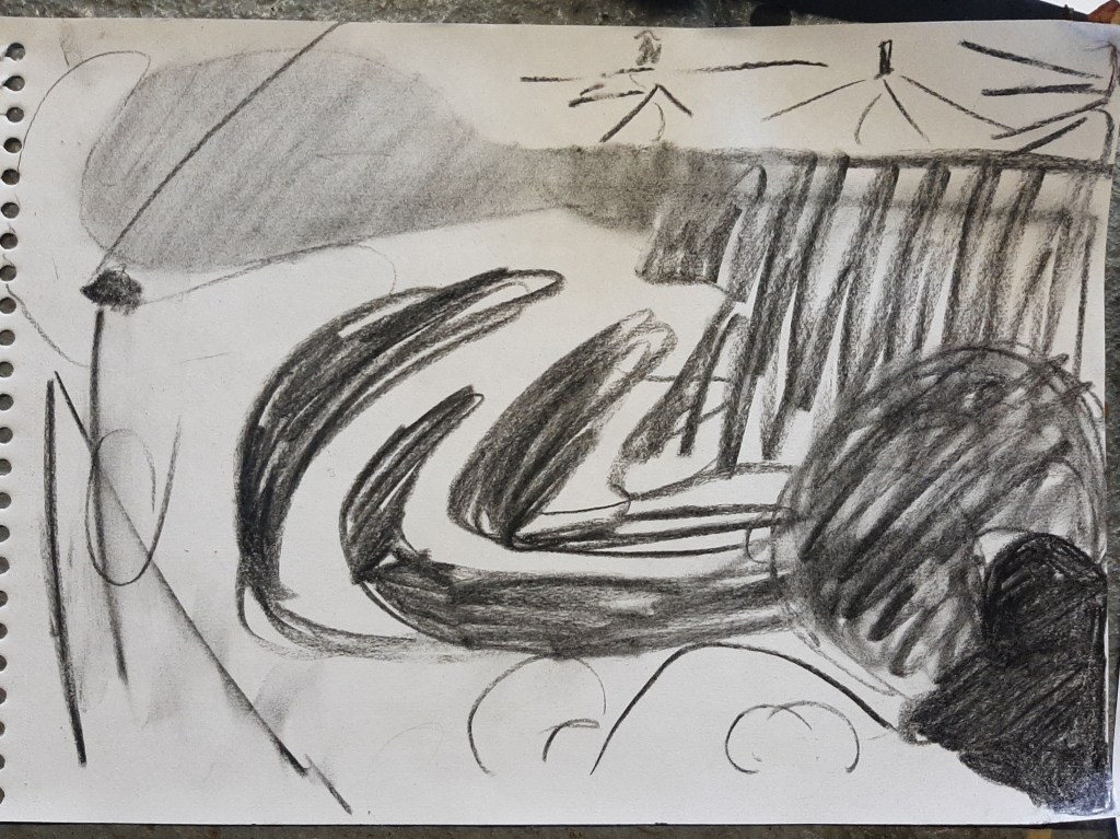 I drew for a day and a half, thinking about the painting composition I’m going to use.