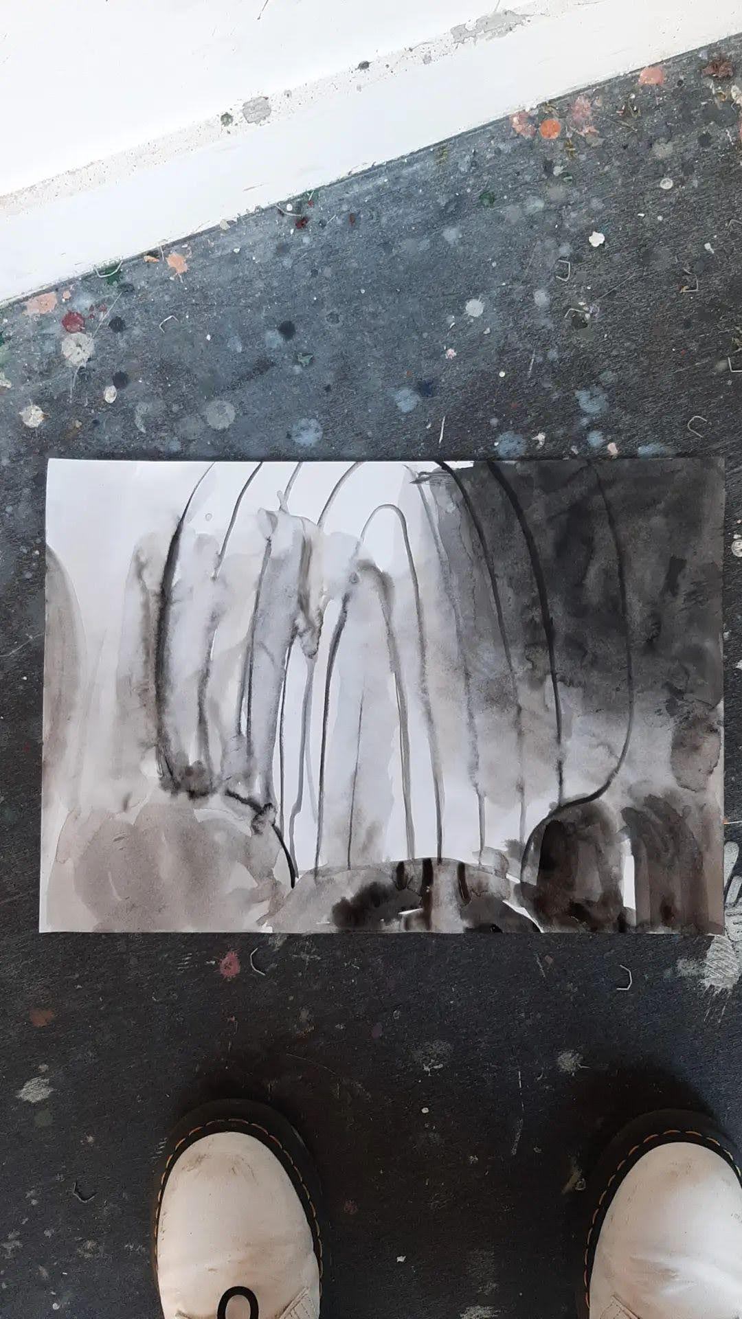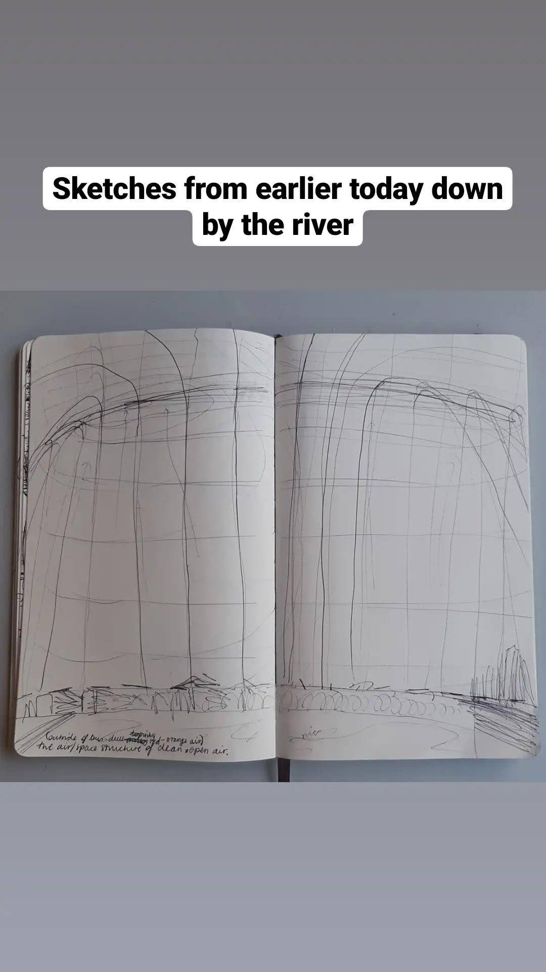 What really hit as I walked along the riverbanks was the sense of relief to see such immense space in this city. A sigh of breath at the wonder of the open sky, a clean space that shoots up into unfathomable heights above. Immensely calming. I begun to draw the river, and with this experience of the river, I began to sketch out the structures of this empty space. I then back to the studio and made some more drawings from the sketches. Here are some photos of them: