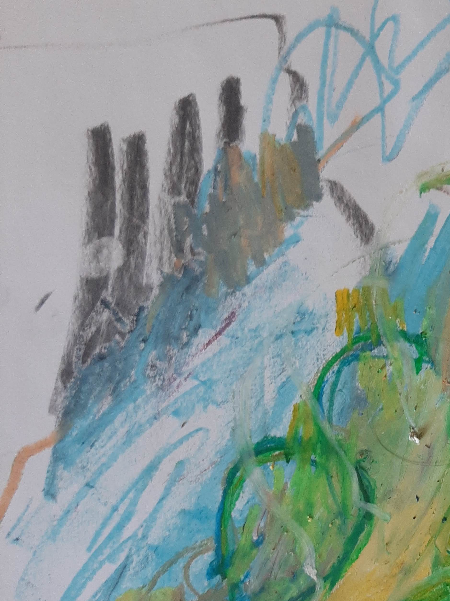 It’s funny I look at this drawing now, nearly a month from when it was made, and lots of the marks, especially the more colourful, more abstract, perhaps more emotional marks are undecipherable – I don’t know what they represent! The fleetingness of lots of this journey are amazing. And yet a small number of things stick with me.