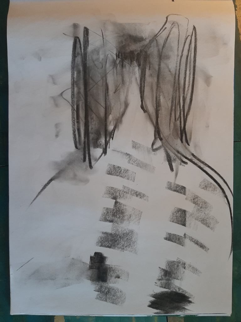 Later that day I got out charcoal and oil pastels, and sketched on paper memories of the run. Any feelings or views or moments, events that had stuck with me. I didn’t think too much about what I was doing, I just made.