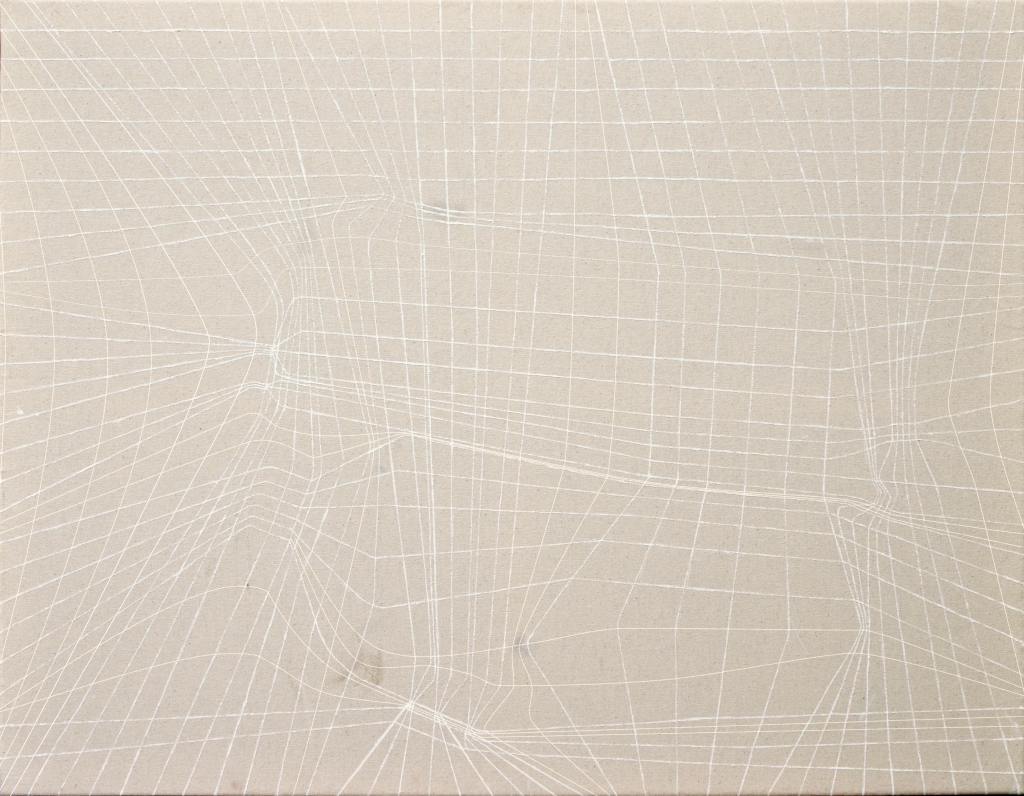 This looks better in terms of undulation, but the problem is that at the edge of the canvas I had designed the grid lines to be evenly spaced. Adding in these extra lines ruins that, suggesting the lines conform into even squares beyond the edge of the canvas. The painting then doesn’t look so complete, but part of a larger grid that extends beyond the canvas. Is this a good or bad thing? I don’t think that’s bad. In fact I’m tempted to add these lines into the painting! If it didn’t take so long to do!