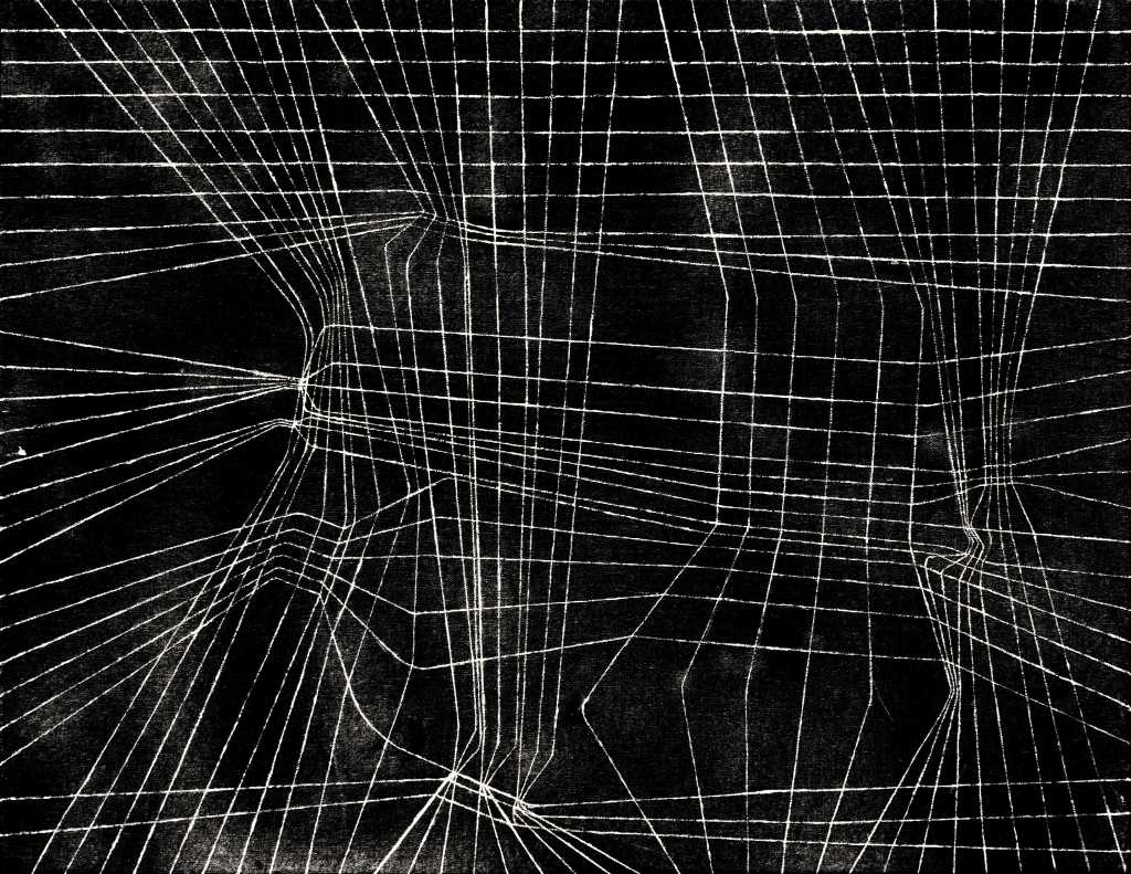 The white image doesn’t have the same feeling of open space. It has a strong 1960s sci-fi aesthetic, I’m thinking 2001 A Space Odyssey. The grid looks more like an aesthetic, illustrative? pattern, rather than something with depth to it. Although the more I look at it the more depth I see… Hmm.