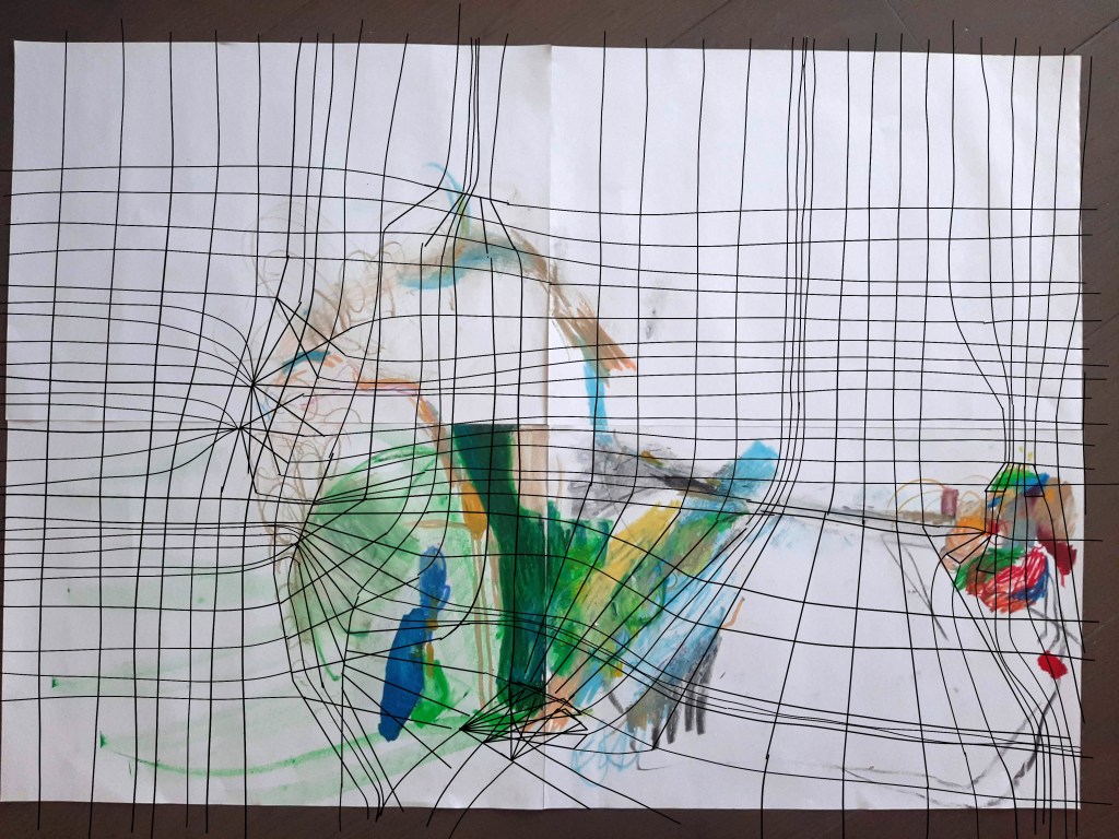 I then copied this grid drawing out onto plain paper, detaching the grid from the experiential drawing, and more carefully drew the grid out evenly: