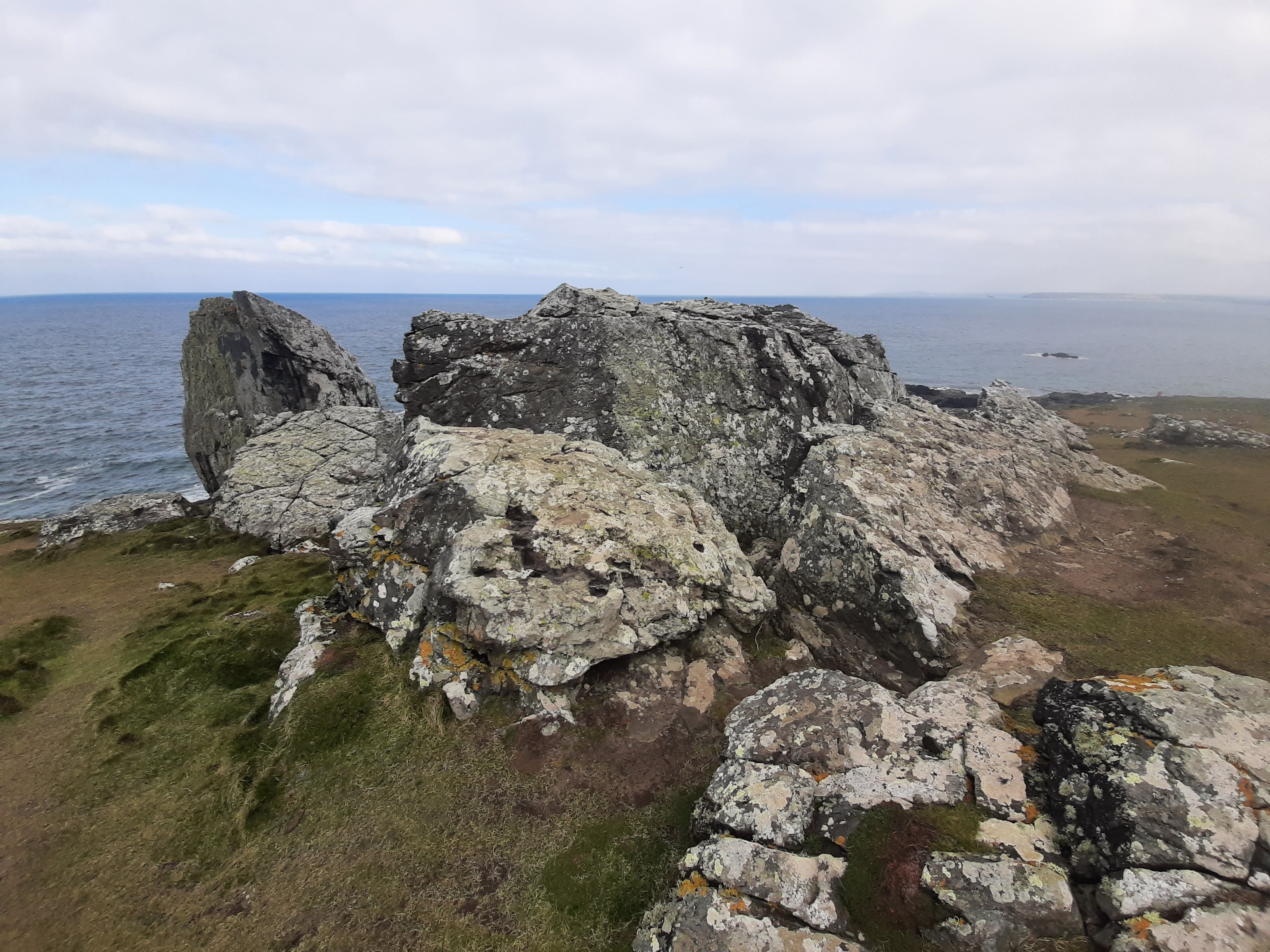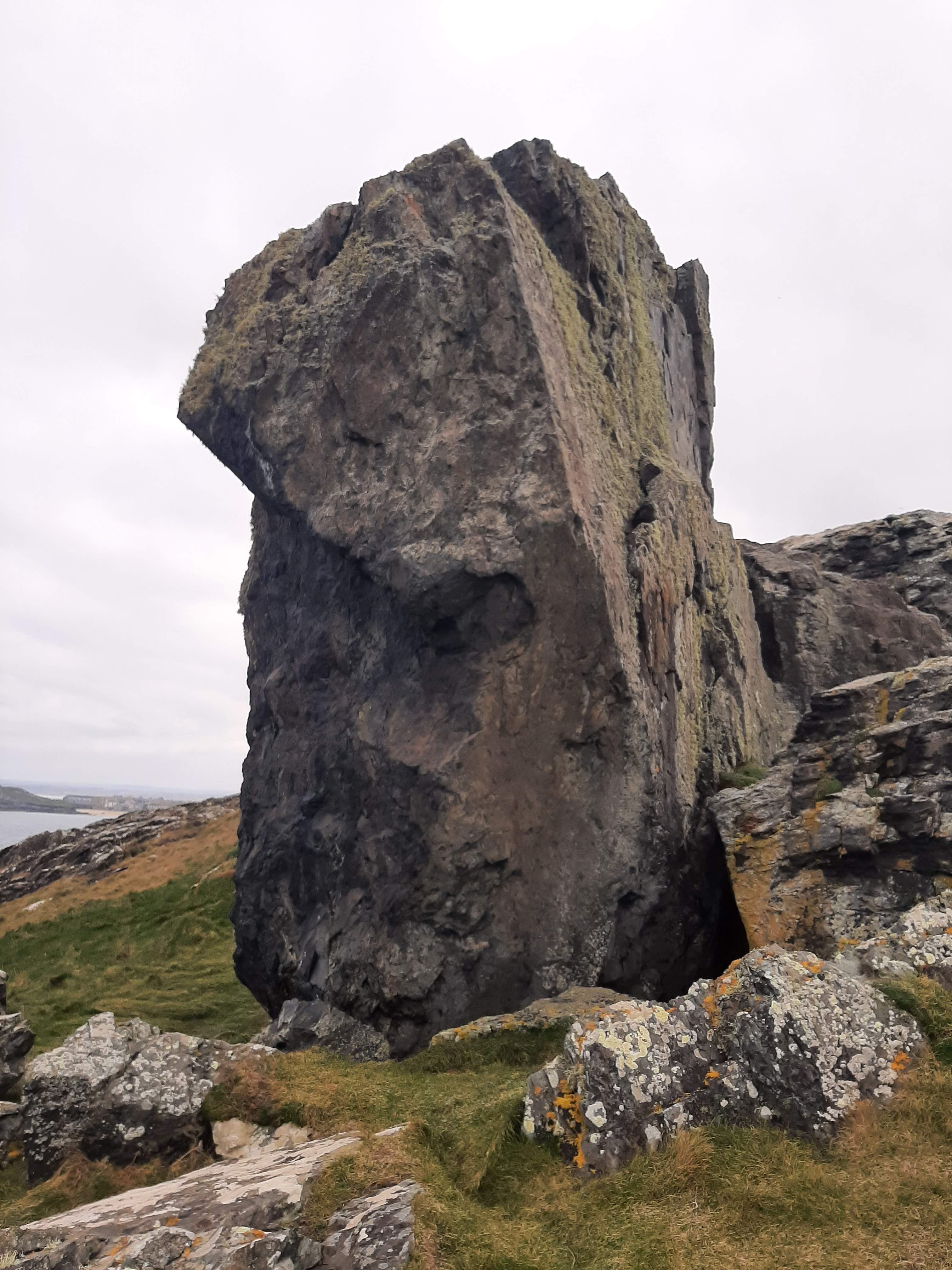 I went on a walk today, I set off West from Porthmeor beach, towards Lands End (28 miles away). It was blue skies but getting greyer as the day went on. I planned to walk for a few hours, doing a loop inland to get back, but on a headland just before losing St Ives from sight behind, some rocks caught my interest. There was a cluster of rocks just starting to show through, higher upland from some rocks that were exposed, jutting up metres into the sky.