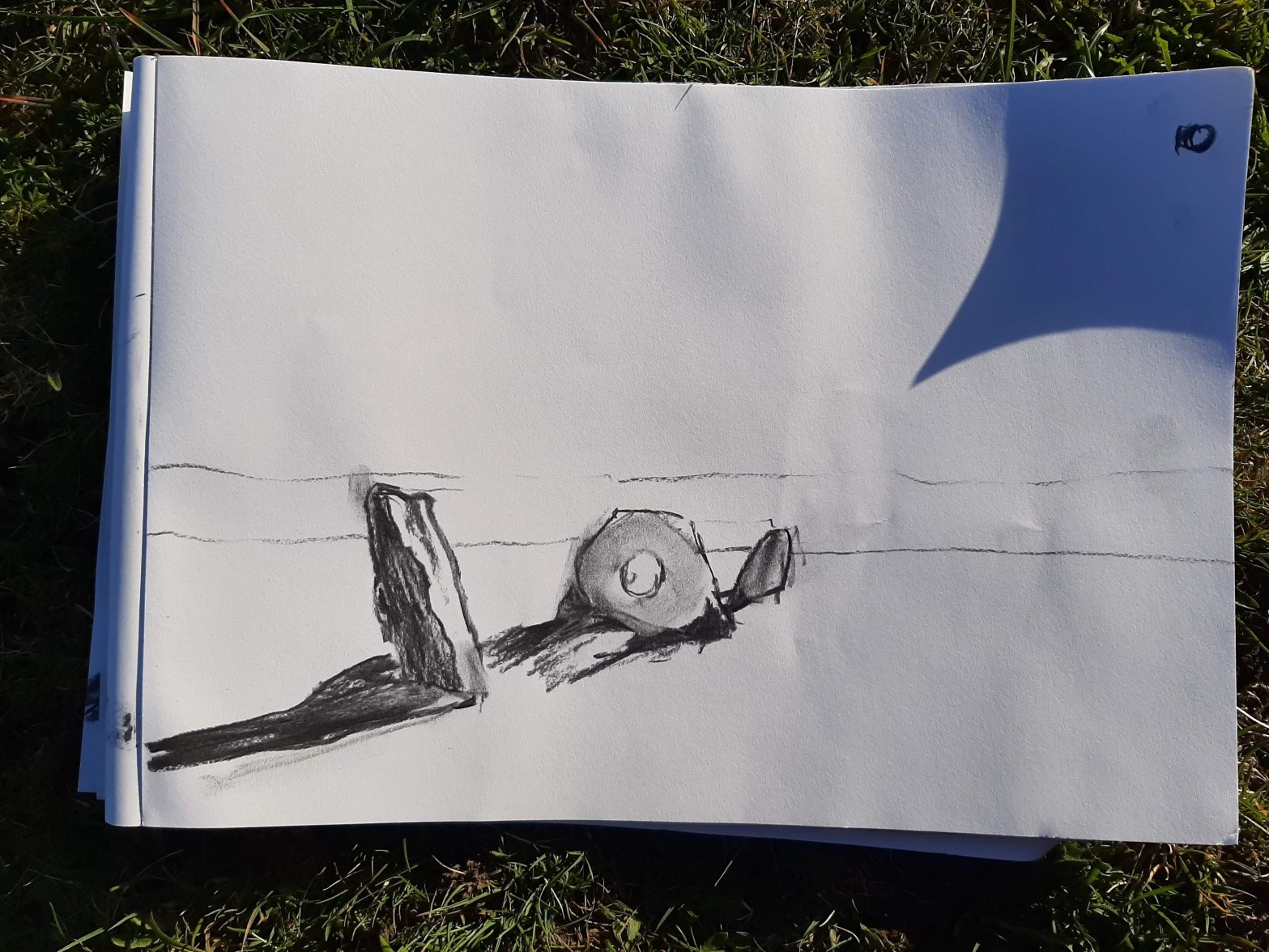 A lot of the drawings included the sun in them. I want to explore this in painting, the rocks and the sun.